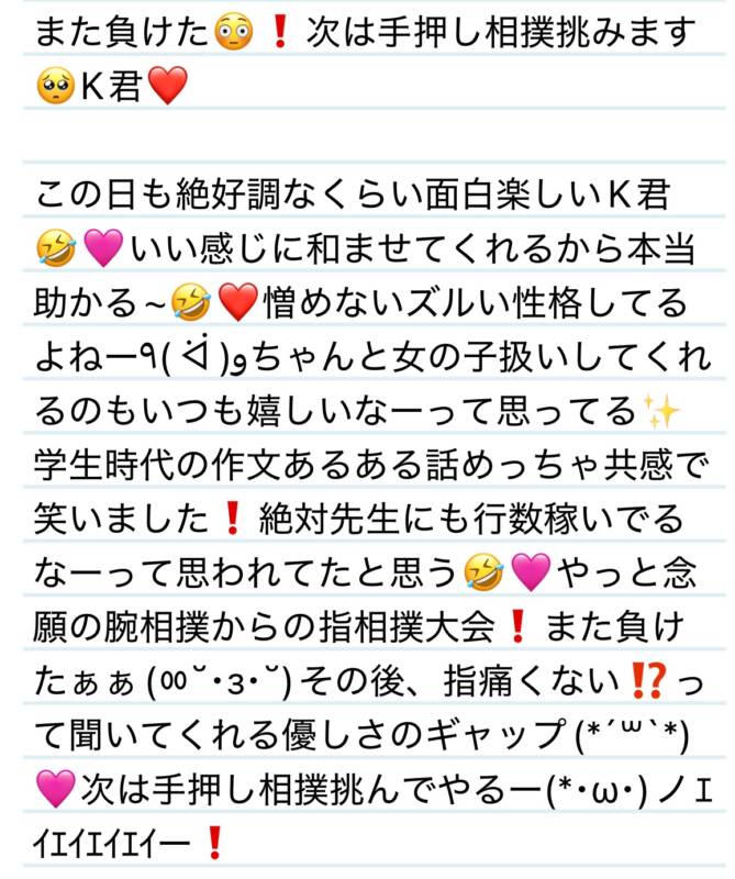 12日 また負けた😳❗️次は手押し相撲挑みます🥺 2025 8/14 夢華 2025.08.14 北陸唯一!パフォーマンスに特化した「魅せる」メンズエステ 心身ともにリラックス。非日常的な極上のひと時を貴方に… お電話でのご予約はこちら LINEでのご予約はこちら 営業時間|9:30~25:00(9:00~25:00 最終受付) 完全ご予約制ご新規様、リピーター様の事前ご予約承ります 夢華 よかったらシェアしてね! URL Copied! URL Copied! 12日 急速に仲良くなれて嬉しいーっっ☺️✨Tちゃん❤️ 12日 後1日ファイトだよー❗️✨٩( ᐛ )وS様❤️ 関連記事 20日 K君=クリーニングのK⁉️😳K君❤️ 2025.08.23 3日 嬉しい再会ありがとう☺️✨S様❤️ 2025.11.04 1日 何分コースでも顔観れるだけで嬉しい🩷me too✨S様❤️ 2025.08.07 15日 テンション上げてくれてありがとうーーっっ✨Yちゃん❤️ 2025.11.17 明日&来週もよろしくお願いします❤️ 2025.10.24 5日 またUさんのこと色々知れて嬉しい☺️✨U様❤️ 2026.01.06 10.18 IQまめっち並みに天才‼️W様❤️ 2025.10.20 本日もよろしくお願いします✨🩷 2025.11.25