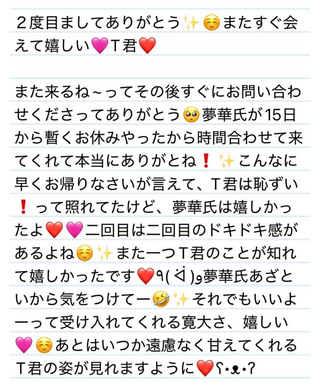 13日 2度目ましてありがとう✨☺️またすぐ会えて嬉しい🩷T君❤️ 2025 8/14 夢華 2025.08.14 北陸唯一!パフォーマンスに特化した「魅せる」メンズエステ 心身ともにリラックス。非日常的な極上のひと時を貴方に… お電話でのご予約はこちら LINEでのご予約はこちら 営業時間|9:30~25:00(9:00~25:00 最終受付) 完全ご予約制ご新規様、リピーター様の事前ご予約承ります 夢華 よかったらシェアしてね! URL Copied! URL Copied! 13日 おかげでいつもモチベーション上がります✨M様💟❤️ 14日 ッッッッッッ(● ˃̶͈̀ロ˂̶͈́)੭ꠥ⁾⁾←照れすぎて言葉にならない奴⁉️Kちゃん❤️ 関連記事 27日 また来年もゆっくり施術させてね✨来てくれてありがとう🩷H様❤️ 2025.12.28 10.17日今月も会えて嬉しい☺️❤️いつもお任せでしてくれてありがとう✨O様❤️ 2025.10.18 19日 ご先祖は天使か仏様ですか⁉️優しさの塊✨N君❤️ 2025.12.20 26日 嬉しい再会ありがとうございます✨アニメ好きも覚えててくれて嬉しい🩷S様❤️ 2025.08.30 今月もよろしくお願いします❤️💚 2025.12.02 25日 夢華氏まで楽しませてもらいました✨ありがとう☺️H様💟❤️ 2025.11.25 5日 改めて今年もよろしくお願いします✨S様❤️ 2026.01.06 本日もよろしくお願いします🩷 2025.12.22