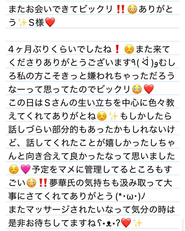14日 またお会いできてびっくり‼️😳ありがとう✨S様❤️ 2025 8/19 夢華 2025.08.19 北陸唯一!パフォーマンスに特化した「魅せる」メンズエステ 心身ともにリラックス。非日常的な極上のひと時を貴方に… お電話でのご予約はこちら LINEでのご予約はこちら 営業時間|9:30~25:00(9:00~25:00 最終受付) 完全ご予約制ご新規様、リピーター様の事前ご予約承ります 夢華 よかったらシェアしてね! URL Copied! URL Copied! 14日 米✖️麺、おじやうどんなら検索したら出てきました🤣Yちゃん❤️ 14日 毎度毎度楽しすぎる時間をありがとうー✨🩷W様❤️ 関連記事 10.17日会えて嬉しい✨❤️喜びが隠せないS様❤️ 2025.10.18 26日 今度Kちゃんの男前なところについて討論しよ✨Kちゃん❤️ 2025.08.30 5日 初々しさが母性くすぐります🩷✨🍀I君❤️ 2025.11.06 19日 まさかのコラボ⁉️✨いつもと違ったMさんが見れて嬉しい✨🩷M様❤️ 2025.08.22 本日もよろしくお願いします🩷 2026.01.07 本日も宜しくお願いします☺️🩷 2025.11.26 27日 またまたまさかの共通点‼️😳運命共同体だよー✨T様❤️ 2025.11.27 30日 カルシウムも糖分もばっちり捕球できました✨R君❤️ 2025.08.31