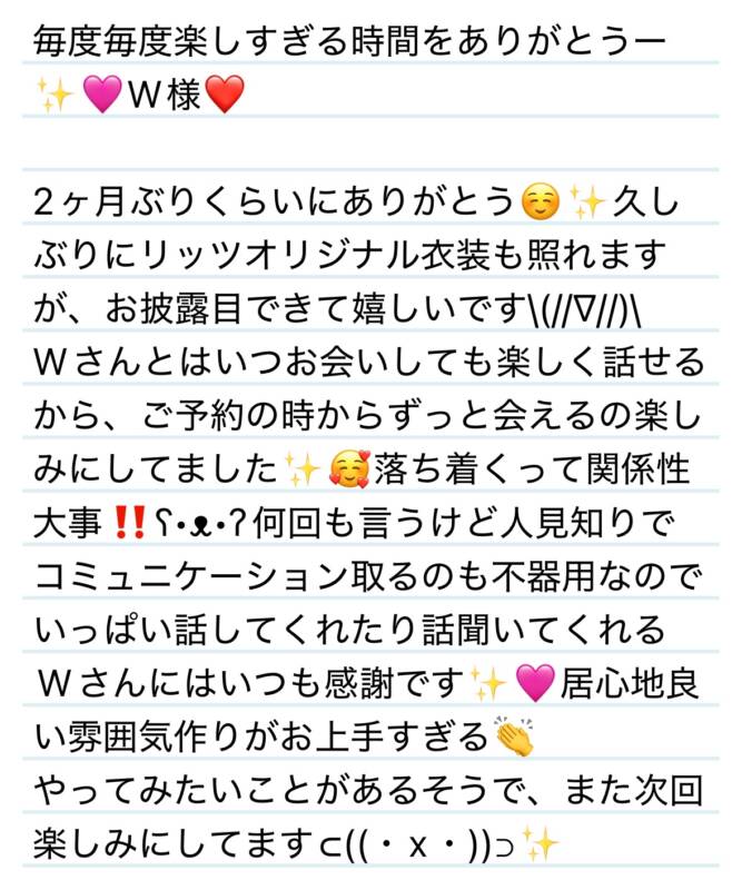 14日 毎度毎度楽しすぎる時間をありがとうー✨🩷W様❤️ 2025 8/19 夢華 2025.08.19 北陸唯一!パフォーマンスに特化した「魅せる」メンズエステ 心身ともにリラックス。非日常的な極上のひと時を貴方に… お電話でのご予約はこちら LINEでのご予約はこちら 営業時間|9:30~25:00(9:00~25:00 最終受付) 完全ご予約制ご新規様、リピーター様の事前ご予約承ります 夢華 よかったらシェアしてね! URL Copied! URL Copied! 14日 またお会いできてびっくり‼️😳ありがとう✨S様❤️ 19日 まさかのコラボ⁉️✨いつもと違ったMさんが見れて嬉しい✨🩷M様❤️ 関連記事 22日 素直なお言葉が嬉しいです✨ありがとう🥰N様❤️ 2025.08.23 27日 夢華と田中みな実さんとYさんの3人で王将行く話😆Y様❤️ 2025.11.27 10月も本当にありがとうーーっっ✨🩷来月もよろしくお願いします🥰✨ 2025.10.31 6日 タイトル迷うほど盛りだくさんなトークありがとう✨T様❤️ 2026.01.07 8日 今年もたくさん三姉妹と過ごしてくれてありがとう✨Y様❤️ 2025.12.09 本日もよろしくお願いします❤️ 2025.10.30 19日 今年も大変お世話になりました✨来年もお世話になります🥰Y様❤️ 2025.12.20 16日会話のテンポが素晴らしい✨心のツボ押してくれてありがとう❤️Yちゃん❤️ 2026.01.19