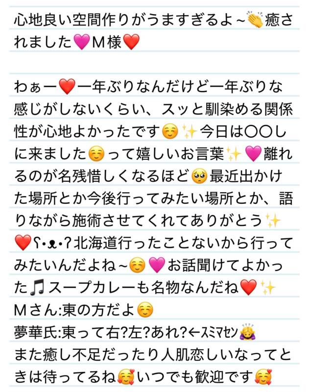 19日 心地よい空間作りがうますぎるよ~👏癒されました🩷M様❤️ 2025 8/22 夢華 2025.08.22 北陸唯一!パフォーマンスに特化した「魅せる」メンズエステ 心身ともにリラックス。非日常的な極上のひと時を貴方に… お電話でのご予約はこちら LINEでのご予約はこちら 営業時間|9:30~25:00(9:00~25:00 最終受付) 完全ご予約制ご新規様、リピーター様の事前ご予約承ります 夢華 よかったらシェアしてね! URL Copied! URL Copied! 19日 新たな扉を開いてくれてありがとう✨初めてもらっちゃった❤️✨O様❤️ 19日 1番遠距離な方🥺だからこそ会えた時の嬉しさ増し増しです✨K君❤️ 関連記事 28日 きっかけは夢華氏🩷嬉しい新事実✨U様❤️ 2025.11.29 11日 お癒し隊はいつでも駆けつけます✨🩷Kちゃん❤️ 2025.08.14 本日もよろしくお願いします❤️ 2026.01.10 10日 かわいすぎるお揃いアイテムもありがとう✨❤️Kちゃん❤️ 2025.08.12 本日もよろしくお願いします🩷新ルームにてお待ちしてます✨ 2025.11.21 13日 おかげでいつもモチベーション上がります✨M様💟❤️ 2025.08.14 31日 この日も癒される時間をありがとう✨🍀離れ難い時どうしたらいいー?🥺K様❤️ 2025.11.03 24日オアシスのようなお癒しタイムをありがとう✨❤️I君❤️ 2026.01.26