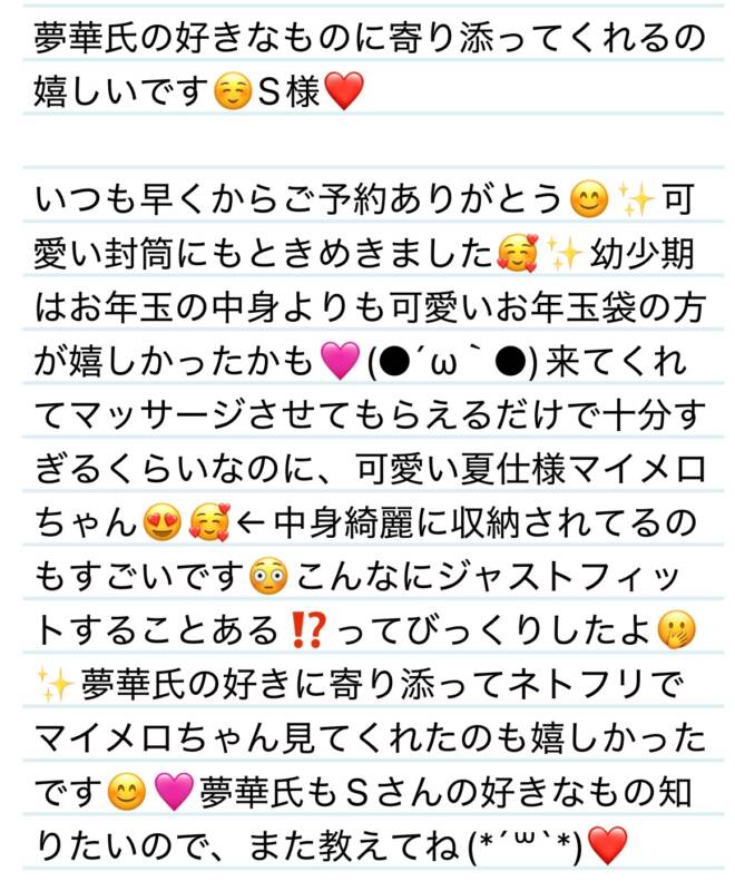 20日 夢華氏の好きなものに寄り添ってくれるの嬉しいです❤️✨S様❤️ 2025 8/23 夢華 2025.08.23 北陸唯一!パフォーマンスに特化した「魅せる」メンズエステ 心身ともにリラックス。非日常的な極上のひと時を貴方に… お電話でのご予約はこちら LINEでのご予約はこちら 営業時間|9:30~25:00(9:00~25:00 最終受付) 完全ご予約制ご新規様、リピーター様の事前ご予約承ります 夢華 よかったらシェアしてね! URL Copied! URL Copied! 20日 優しい雰囲気が光輝くオーラに纏われてる✨K様❤️ 20日 K君=クリーニングのK⁉️😳K君❤️ 関連記事 23日 やぁぁっと会えたね✨会えなかっな分まで多幸感🍀ありがとう✨I様❤️ 2025.08.25 14日 素敵な受身体制、セラピストにとって1番嬉しいですね✨D様❤️ 2026.01.16 28日 スンスンに引き続き、ノンノン来たー‼️☃️✨ルンルンする夢華氏❤️S様❤️ 2026.01.29 12日 お心遣いの天才‼️いつもありがとうぅ❤️✨S様❤️ 2026.01.14 本日もよろしくお願いします♡ 2025.10.17 11日 ヤーッッ\(^o^)/🐭🐱S君❤️ 2025.08.14 今日もありがとう✨❤️明日もいます✨❤️問い合わせお待ちしてますね✨ 2025.12.02 22日 二度目ましてが言えて嬉しい✨K様💟❤️ 2025.11.24