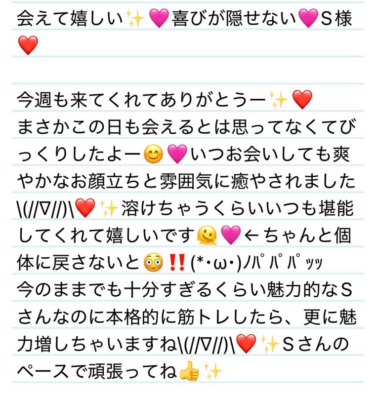10.17日会えて嬉しい✨❤️喜びが隠せないS様❤️ 2025 10/18 夢華 2025.10.18 2025.10.18 北陸唯一!パフォーマンスに特化した「魅せる」メンズエステ 心身ともにリラックス。非日常的な極上のひと時を貴方に… お電話でのご予約はこちら LINEでのご予約はこちら 営業時間|9:30~25:00(9:00~25:00 最終受付) 完全ご予約制ご新規様、リピーター様の事前ご予約承ります 夢華 よかったらシェアしてね! URL Copied! URL Copied! 10.17日 今度はアニメトークも是非しましょう✨Y様❤️ 10.17日今月も会えて嬉しい☺️❤️いつもお任せでしてくれてありがとう✨O様❤️ 関連記事 7日 3日ぶり😊🩷たくさん会えて嬉しい✨I様❤️ 2025.11.08 23日 やぁぁっと会えたね✨会えなかっな分まで多幸感🍀ありがとう✨I様❤️ 2025.08.25 2日 センス良すぎます✨美活セットありがとう✨S様❤️ 2025.08.07 19日 ご先祖は天使か仏様ですか⁉️優しさの塊✨N君❤️ 2025.12.20 19日 心地よい空間作りがうますぎるよ~👏癒されました🩷M様❤️ 2025.08.22 本日もよろしくお願いします😍💚 2025.10.27 28日 夢華氏年越し✨今年もお仕事お疲れ様でした🩷M様💟❤️ 2025.12.29 8日 今年もたくさん三姉妹と過ごしてくれてありがとう✨Y様❤️ 2025.12.09