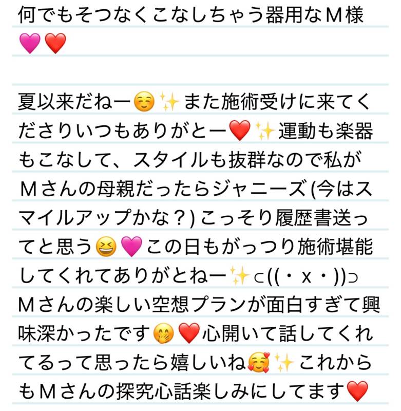 4日 なんでもそつなくこなしちゃう器用なM様✨❤️ 2025 11/06 夢華 2025.11.06 北陸唯一!パフォーマンスに特化した「魅せる」メンズエステ 心身ともにリラックス。非日常的な極上のひと時を貴方に… お電話でのご予約はこちら LINEでのご予約はこちら 営業時間|9:30~25:00(9:00~25:00 最終受付) 完全ご予約制ご新規様、リピーター様の事前ご予約承ります 夢華 よかったらシェアしてね! URL Copied! URL Copied! 4日いつもまったり癒される時間をありがとう🍀✨I様❤️ 5日 甘い香りに誘われて✨いい香りがすぎる✨K君❤️ 関連記事 27日 やぁぁっとタイミング合ったみたいでありがとう🥰N様💟❤️ 2025.10.29 10月も本当にありがとうーーっっ✨🩷来月もよろしくお願いします🥰✨ 2025.10.31 25日 夢華氏まで楽しませてもらいました✨ありがとう☺️H様💟❤️ 2025.11.25 11日 出会えてよかった✨心まで美しい騎士様(T様❤️) 2025.12.12 9日 今年もありがとう✨やっとタイミング合ったね☺️N様💟❤️ 2026.01.10 11日 ヤーッッ\(^o^)/🐭🐱S君❤️ 2025.08.14 本日もよろしくおねがいします✨❤️ 2025.12.09 24日 お初目にかかります✨そうです、私が夢華氏です❤️T様❤️ 2025.12.25