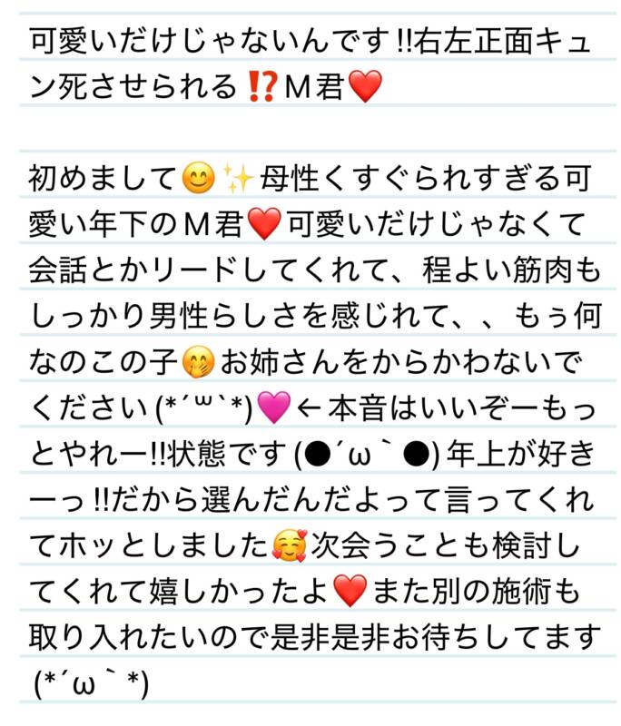7日 カワイイだけじゃないんです‼︎右左正面キュン死させられる⁉️M君❤️ 2025 11/08 夢華 2025.11.08 北陸唯一!パフォーマンスに特化した「魅せる」メンズエステ 心身ともにリラックス。非日常的な極上のひと時を貴方に… お電話でのご予約はこちら LINEでのご予約はこちら 営業時間|9:30~25:00(9:00~25:00 最終受付) 完全ご予約制ご新規様、リピーター様の事前ご予約承ります 夢華 よかったらシェアしてね! URL Copied! URL Copied! 本日もよろしくお願いします❤️ 7日 3日ぶり😊🩷たくさん会えて嬉しい✨I様❤️ 関連記事 16日会話のテンポが素晴らしい✨心のツボ押してくれてありがとう❤️Yちゃん❤️ 2026.01.19 26日 今度Kちゃんの男前なところについて討論しよ✨Kちゃん❤️ 2025.08.30 本日もよろしくお願いします🩷 2026.01.17 本日もよろしくお願いします🩷 2025.12.22 16日 頑張って受身になってくれてありがとう✨😊Y様💟❤️ 2026.01.17 17日 無事ミッション終えて何よりです✨お疲れ様🩷N様(Hさま)❤️ 2025.12.19 26日 二度目ましてありがとう☺️また来てくださってびっくり‼️Y様❤️ 2026.01.28 来週もお待ちしてます❤️✨ 2026.01.24