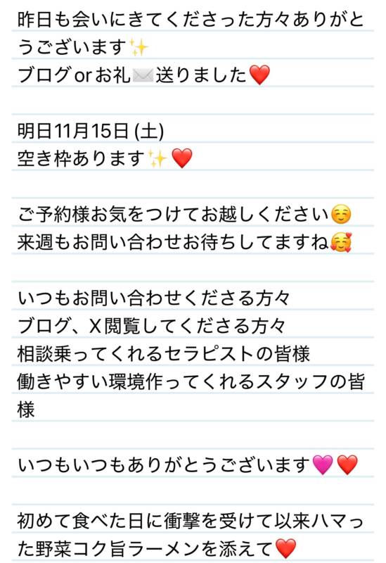 明日もよろしくお願いします✨来週の夢華氏✨ラーメンは一年通していつでも美味しいの三本です‼︎ 2025 11/14 夢華 2025.11.14 北陸唯一!パフォーマンスに特化した「魅せる」メンズエステ 心身ともにリラックス。非日常的な極上のひと時を貴方に… お電話でのご予約はこちら LINEでのご予約はこちら 営業時間|9:30~25:00(9:00~25:00 最終受付) 完全ご予約制ご新規様、リピーター様の事前ご予約承ります 夢華 よかったらシェアしてね! URL Copied! URL Copied! 13日 心のビタミン的存在✨リフレッシュできたぁ🩷F-君❤️ 15日 テンション上げてくれてありがとうーーっっ✨Yちゃん❤️ 関連記事 本日もよろしくお願いします🩷 2025.11.05 8.31🍆何の日しんちゃんへ🍅 2025.08.31 29日 たまにはこっちに書いてみる⁉️📝肉の日だしね🎵お肉様❤️ 2025.10.30 14日 毎度毎度楽しすぎる時間をありがとうー✨🩷W様❤️ 2025.08.19 本日もよろしくお願いします❤️ 2025.12.17 10.18タイムリーに会いにきてくださりありがとう😳I様❤️ 2025.10.20 20日 私が誰より1番⁉️✨ラムちゃん🐑 2025.08.23 10日 共通点も発見できて楽しすぎましたぁぁ✨T様❤️ 2025.11.11