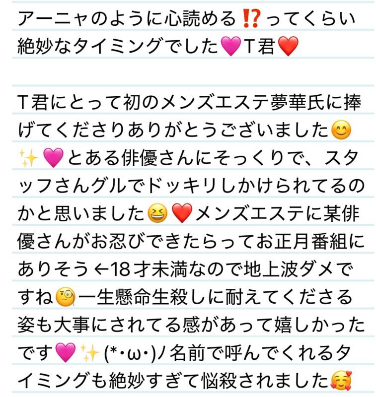 5日 アーニャのように心読める⁉️ってくらい絶妙なタイミングでした🩷T君❤️ 2025 12/06 夢華 2025.12.06 北陸唯一!パフォーマンスに特化した「魅せる」メンズエステ 心身ともにリラックス。非日常的な極上のひと時を貴方に… お電話でのご予約はこちら LINEでのご予約はこちら 営業時間|9:30~25:00(9:00~25:00 最終受付) 完全ご予約制ご新規様、リピーター様の事前ご予約承ります 夢華 よかったらシェアしてね! URL Copied! URL Copied! 5日 全力で神様にお願いします🥺想像しただけで寂しい🥺K様❤️ 5日 日中でも夜でもいつでもウェルカムです✨❤️O様❤️ 関連記事 27日 夢華と田中みな実さんとYさんの3人で王将行く話😆Y様❤️ 2025.11.27 10日 共通点も発見できて楽しすぎましたぁぁ✨T様❤️ 2025.11.11 22日 素直なお言葉が嬉しいです✨ありがとう🥰N様❤️ 2025.08.23 6日 ズバリ、テトリスのT君✨⁉️❤️T君❤️ 2025.08.10 10日 悔しいくらい面白さ全開✨❤️M様❤️ 2025.08.12 5日 日中でも夜でもいつでもウェルカムです✨❤️O様❤️ 2025.12.06 10.22金沢の女にしてくれるー⁉️😂✨K様❤️ 2025.10.23 15日 テンション上げてくれてありがとうーーっっ✨Yちゃん❤️ 2025.11.17