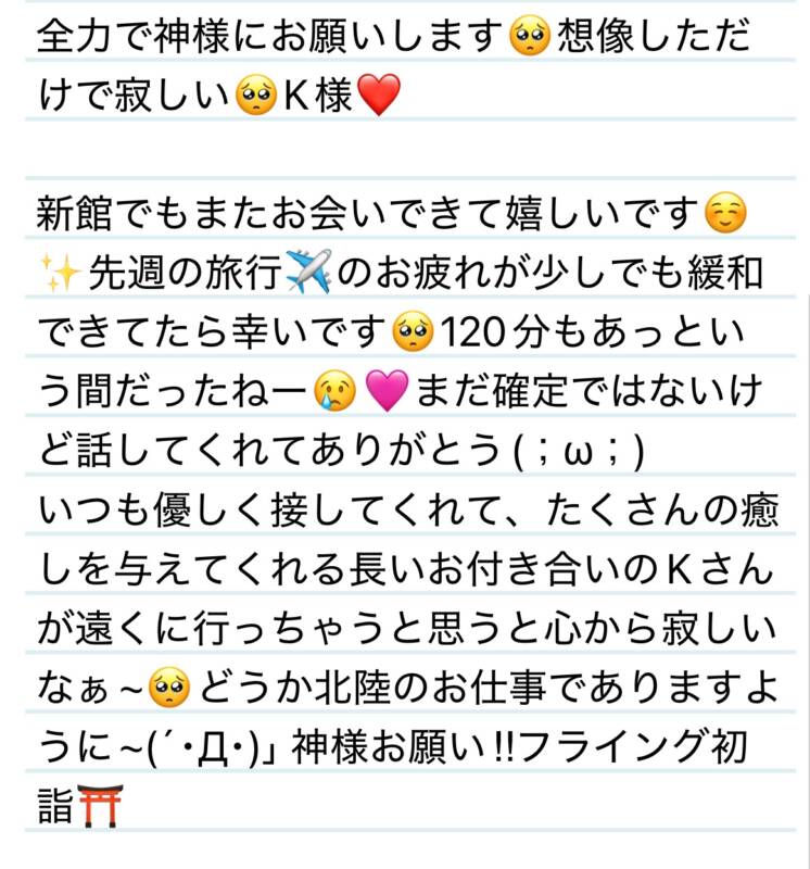 5日 全力で神様にお願いします🥺想像しただけで寂しい🥺K様❤️ 2025 12/06 夢華 2025.12.06 北陸唯一!パフォーマンスに特化した「魅せる」メンズエステ 心身ともにリラックス。非日常的な極上のひと時を貴方に… お電話でのご予約はこちら LINEでのご予約はこちら 営業時間|9:30~25:00(9:00~25:00 最終受付) 完全ご予約制ご新規様、リピーター様の事前ご予約承ります 夢華 よかったらシェアしてね! URL Copied! URL Copied! 本日も宜しくお願いします✨☃️お気をつけてお越しください‼️ 5日 アーニャのように心読める⁉️ってくらい絶妙なタイミングでした🩷T君❤️ 関連記事 25日 夢華氏まで楽しませてもらいました✨ありがとう☺️H様💟❤️ 2025.11.25 22日 Xday無事過ぎたのでまた改めてよろしくお願いします❤️✨K様❤️ 2025.08.23 今週もよろしくお願いします❤️ 2025.11.24 27日 夢華と田中みな実さんとYさんの3人で王将行く話😆Y様❤️ 2025.11.27 来週の夢華氏です٩( ᐛ )و 2025.12.13 25日 3度目ましても言えて嬉しい☺️✨本当にありがとう✨T様❤️ 2025.08.30 本日もよろしくお願いします✨ 2025.09.02 27日 いつもありがとう🥰心のこもった差し入れも嬉しいです✨N様❤️ 2025.10.29