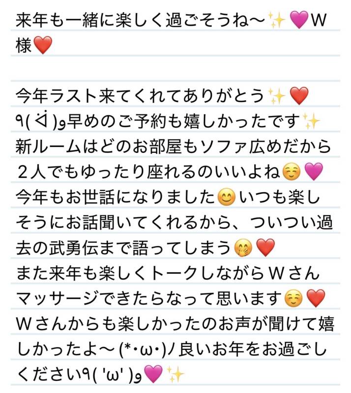 29日 来年も一緒に楽しく過ごそうね✨W様❤️ 2025 12/31 夢華 2025.12.31 北陸唯一!パフォーマンスに特化した「魅せる」メンズエステ 心身ともにリラックス。非日常的な極上のひと時を貴方に… お電話でのご予約はこちら LINEでのご予約はこちら 営業時間|9:30~25:00(9:00~25:00 最終受付) 完全ご予約制ご新規様、リピーター様の事前ご予約承ります 夢華 よかったらシェアしてね! URL Copied! URL Copied! 29日 こちらこそ心の癒しをありがとう✨W君❤️ 今年もたくさんお世話になりました❤️皆様に感謝です✨ 関連記事 本日もよろしくお願いします🩷 2025.11.05 17日 無事ミッション終えて何よりです✨お疲れ様🩷N様(Hさま)❤️ 2025.12.19 7日 ちいかわのうさぎみたいな現象🐰イカ焼き様❤️ 2025.11.08 22日 いつも癒されたいときに来てくれて嬉しい☺️夢華パワー充電足りた⁉️K様❤️ 2025.12.24 3日 嬉しい再会ありがとう☺️✨S様❤️ 2025.11.04 13日 恋愛トーク楽しすぎました☺️また語りましょー🩷Y様❤️ 2025.08.14 27日 某俳優さん(アイドル)ににてるーっっ✨S君❤️ 2025.10.29 27日 明るく楽しい憎めない人柄の持ち主✨U様💟❤️ 2025.12.28