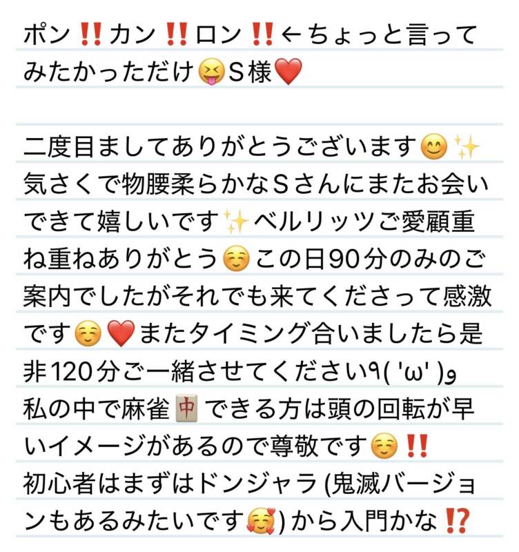 7日ポン‼️カン‼️ロン‼️←ちょっと言ってみたかっただけ😝S様❤️ 2026 1/09 夢華 2026.01.09 2026.01.09 北陸唯一!パフォーマンスに特化した「魅せる」メンズエステ 心身ともにリラックス。非日常的な極上のひと時を貴方に… お電話でのご予約はこちら LINEでのご予約はこちら 営業時間|9:30~25:00(9:00~25:00 最終受付) 完全ご予約制ご新規様、リピーター様の事前ご予約承ります 夢華 よかったらシェアしてね! URL Copied! URL Copied! 本日もよろしくお願いします🩷 本日もよろしくお願いします❤️ 関連記事 25日 こないだぶりだけどいっぱいお話しできて楽しい〜☺️H君❤️ 2025.12.27 6日 今度猫じゃらし用意しとくね✨K君❤️ 2025.08.10 10.20お菓子をくれても悪戯します🥺✨K様❤️ 2025.10.22 8日 イジワルじゃないもん、マッサージしてるだけだもん😆←言い方w T君❤️ 2025.12.09 14日 いつもお疲れ様😊マッサージ聞いたみたいで何よりです✨F様💟❤️ 2026.01.16 30日 24時間テレビスペシャル企画⁉️🤣ゆゆゆの夢太郎⁉️お肉様🍖❤️ 2025.08.31 本日もよろしくお願いします❤️ 2025.11.07 23日爪の先まで美意識高いの尊敬です✨🩷N様❤️ 2025.08.25