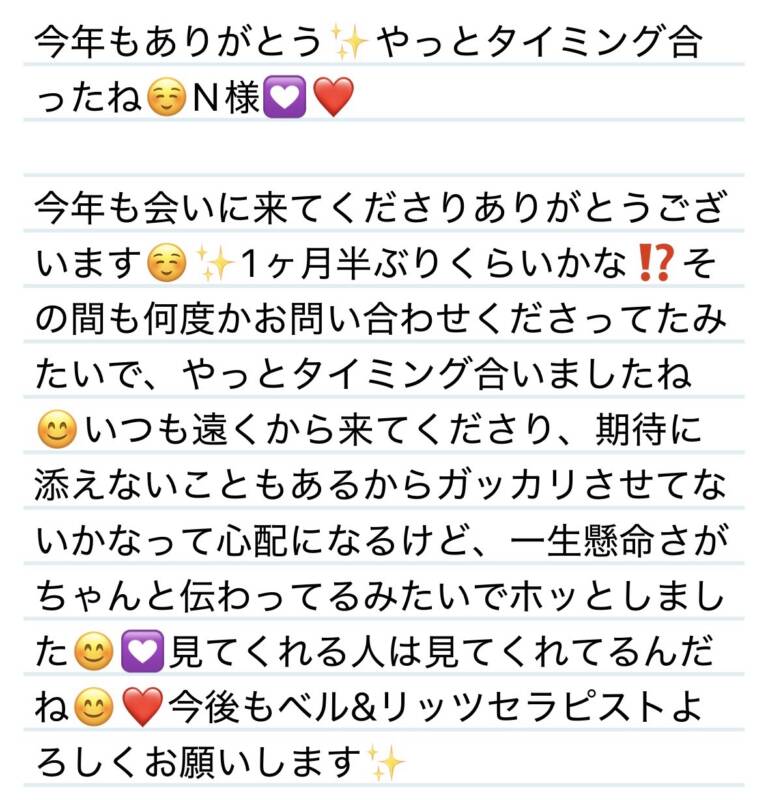 9日 今年もありがとう✨やっとタイミング合ったね☺️N様💟❤️ 2026 1/10 夢華 2026.01.10 北陸唯一!パフォーマンスに特化した「魅せる」メンズエステ 心身ともにリラックス。非日常的な極上のひと時を貴方に… お電話でのご予約はこちら LINEでのご予約はこちら 営業時間|9:30~25:00(9:00~25:00 最終受付) 完全ご予約制ご新規様、リピーター様の事前ご予約承ります 夢華 よかったらシェアしてね! URL Copied! URL Copied! 本日もよろしくお願いします❤️ 9日 夢華パワーいっぱい与えます✨😊N様(H様)❤️ 関連記事 8日 イジワルじゃないもん、マッサージしてるだけだもん😆←言い方w T君❤️ 2025.12.09 20日 共通の趣味が出てきたー🩷S様✨❤️ 2026.01.21 明日からもよろしくお願いします❤️🥺 2025.11.06 27日 新しい場所でも変わらず癒しをありがとう✨I様❤️ 2025.11.27 10.17日今月も会えて嬉しい☺️❤️いつもお任せでしてくれてありがとう✨O様❤️ 2025.10.18 9日共感できることたくさんで嬉しい✨🩷T様❤️ 2025.12.10 10.31何の日しんちゃんへ❤️✏️📖 2025.11.03 3日 思い出しただけで楽しかった~って思える時間でした✨H様❤️ 2025.12.05