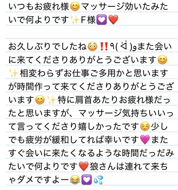 14日 いつもお疲れ様😊マッサージ聞いたみたいで何よりです✨F様💟❤️ 2026 1/16 夢華 2026.01.16 北陸唯一!パフォーマンスに特化した「魅せる」メンズエステ 心身ともにリラックス。非日常的な極上のひと時を貴方に… お電話でのご予約はこちら LINEでのご予約はこちら 営業時間|9:30~25:00(9:00~25:00 最終受付) 完全ご予約制ご新規様、リピーター様の事前ご予約承ります 夢華 よかったらシェアしてね! URL Copied! URL Copied! 本日もよろしくお願いします💕オープン周年イベントスタートしてます❤️ 14日 今年もまた会いに来てくれてありがとう✨T様❤️ 関連記事 本日もよろしくお願いします✨ 2025.09.02 5日 全力で神様にお願いします🥺想像しただけで寂しい🥺K様❤️ 2025.12.06 22日 Xday無事過ぎたのでまた改めてよろしくお願いします❤️✨K様❤️ 2025.08.23 2025年も残りわずか🥺2026年もよろしくお願いします❤️ 2025.12.27 5日 甘い香りに誘われて✨いい香りがすぎる✨K君❤️ 2025.11.06 26日 嬉しい再会ありがとうございます✨アニメ好きも覚えててくれて嬉しい🩷S様❤️ 2025.08.30 29日 東京から会いに来てくれたのー⁉️✨マイメロ様🐰🎀 2025.12.31 5日 改めて今年もよろしくお願いします✨S様❤️ 2026.01.06