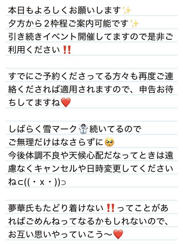 本日もよろしくお願いします❤️ 2026 1/20 夢華 2026.01.20 北陸唯一!パフォーマンスに特化した「魅せる」メンズエステ 心身ともにリラックス。非日常的な極上のひと時を貴方に… お電話でのご予約はこちら LINEでのご予約はこちら 営業時間|9:30~25:00(9:00~25:00 最終受付) 完全ご予約制ご新規様、リピーター様の事前ご予約承ります 夢華 よかったらシェアしてね! URL Copied! URL Copied! 19日声も人柄も所作も美しすぎるK様✨❤️ 20日 共通の趣味が出てきたー🩷S様✨❤️ 関連記事 6日 タイトル迷うほど盛りだくさんなトークありがとう✨T様❤️ 2026.01.07 2日 メロンもマスカットも夢華心くすぐるぜ‼️✨Y様(R君)❤️ 2025.08.07 14日サンタの正体はズバリSさんですね🎄🩷⁉️ 2025.12.15 1日 夢華氏夜更かしご一緒してくれてありがとう✨🩷C様❤️ 2025.08.07 23日 ビリヤニ食べに行こう🎵✨お侍さん❤️ 2026.01.24 13日 またお会いできて嬉しい🥰アーニャ並みの超能力者⁉️✨K様❤️ 2025.08.14 22日ANNIVERSARY✨ちょっと早いけどおめでとう㊗️Nさん(H様)❤️ 2025.08.23 22日 いつも癒されたいときに来てくれて嬉しい☺️夢華パワー充電足りた⁉️K様❤️ 2025.12.24