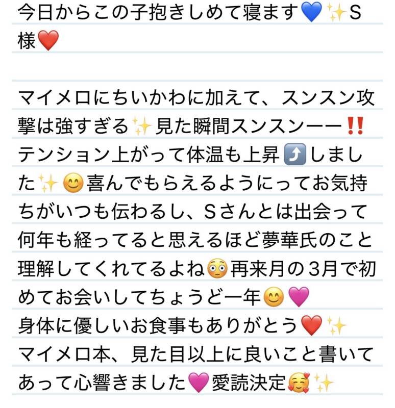 23日 今日からこの子抱きしめて寝ます💙S様❤️ 2026 1/24 夢華 2026.01.24 北陸唯一!パフォーマンスに特化した「魅せる」メンズエステ 心身ともにリラックス。非日常的な極上のひと時を貴方に… お電話でのご予約はこちら LINEでのご予約はこちら 営業時間|9:30~25:00(9:00~25:00 最終受付) 完全ご予約制ご新規様、リピーター様の事前ご予約承ります 夢華 よかったらシェアしてね! URL Copied! URL Copied! 20日 嬉しい楽しい幸せ形容詞が溢れてる✨🩷N君❤️ 23日 ビリヤニ食べに行こう🎵✨お侍さん❤️ 関連記事 2日 センス良すぎます✨美活セットありがとう✨S様❤️ 2025.08.07 24日 夢ちゃんって呼んでくれるの嬉しい😊✨U様❤️ 2026.01.26 4日お外も晴天、夢華氏の心も晴天なり☀️T君❤️ 2025.11.06 1日 初アールリッツ来てくださってありがとう✨N様❤️ 2025.08.07 14日 素敵な受身体制、セラピストにとって1番嬉しいですね✨D様❤️ 2026.01.16 本日もよろしくお願いします❤️ 2026.01.09 9日 今年も会えて嬉しい😊❤️早速癒された✨I様❤️ 2026.01.10 10.17日今月も会えて嬉しい☺️❤️いつもお任せでしてくれてありがとう✨O様❤️ 2025.10.18