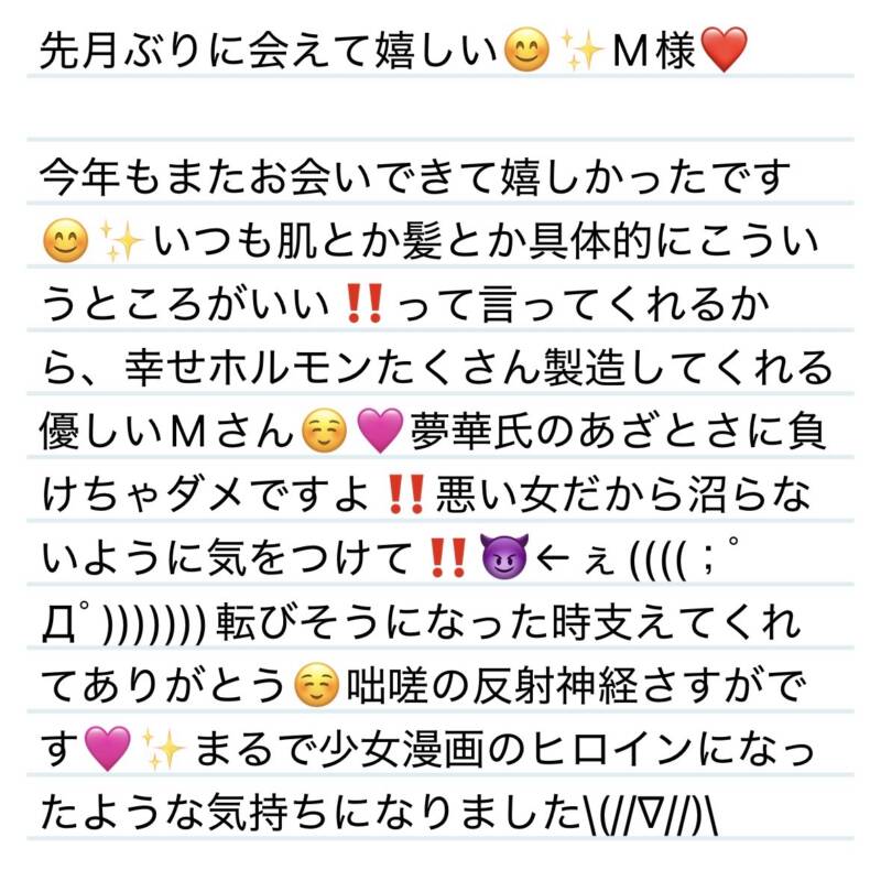 24日 先月ぶりに会えて嬉しい😊✨M様❤️ 2026 1/26 夢華 2026.01.26 北陸唯一!パフォーマンスに特化した「魅せる」メンズエステ 心身ともにリラックス。非日常的な極上のひと時を貴方に… お電話でのご予約はこちら LINEでのご予約はこちら 営業時間|9:30~25:00(9:00~25:00 最終受付) 完全ご予約制ご新規様、リピーター様の事前ご予約承ります 夢華 よかったらシェアしてね! URL Copied! URL Copied! 来週もお待ちしてます❤️✨ 24日 夢ちゃんって呼んでくれるの嬉しい😊✨U様❤️ 関連記事 26日 今度Kちゃんの男前なところについて討論しよ✨Kちゃん❤️ 2025.08.30 25日 癒しの神様降臨⁉️✨🩷M様❤️ 2025.10.26 12日今年もパウダー大名務めさせていただきます💟❤️Y様❤️ 2026.01.14 22日 いつも癒されたいときに来てくれて嬉しい☺️夢華パワー充電足りた⁉️K様❤️ 2025.12.24 9日 今年もありがとう✨やっとタイミング合ったね☺️N様💟❤️ 2026.01.10 10.18 IQまめっち並みに天才‼️W様❤️ 2025.10.20 本日もありがとです✨ 2025.12.15 31日はちゃめちゃに良い香り✨これは追いかけたくなりますね✨K君❤️ 2025.08.31
