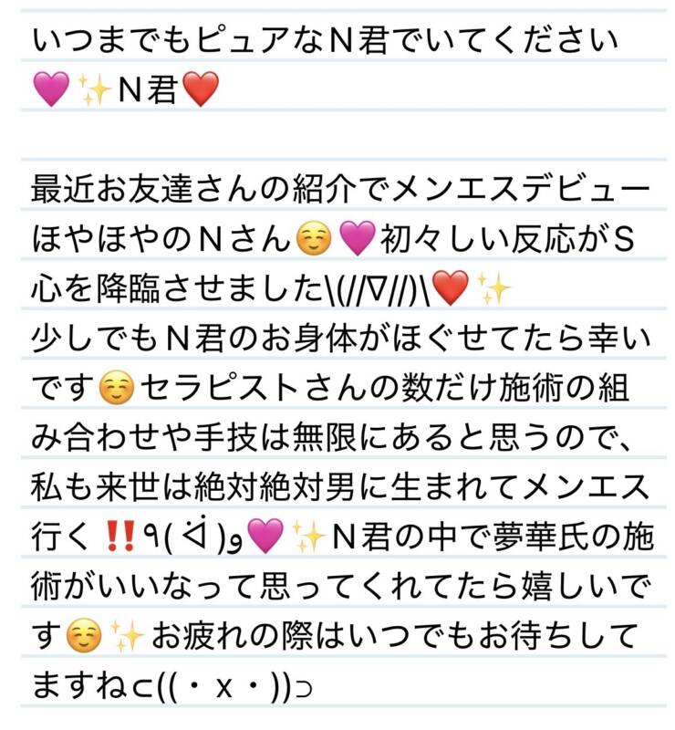 26日 いつまでもピュアなN君でいてください✨🩷N君❤️ 2026 1/28 夢華 2026.01.28 北陸唯一!パフォーマンスに特化した「魅せる」メンズエステ 心身ともにリラックス。非日常的な極上のひと時を貴方に… お電話でのご予約はこちら LINEでのご予約はこちら 営業時間|9:30~25:00(9:00~25:00 最終受付) 完全ご予約制ご新規様、リピーター様の事前ご予約承ります 夢華 よかったらシェアしてね! URL Copied! URL Copied! 26日 二度目ましてありがとう☺️また来てくださってびっくり‼️Y様❤️ 本日もよろしくお願いします❤️ 関連記事 25日 こないだぶりだけどいっぱいお話しできて楽しい〜☺️H君❤️ 2025.12.27 本日もよろしくお願いします🩷 2026.01.17 11日 ヤーッッ\(^o^)/🐭🐱S君❤️ 2025.08.14 25日 癒しの神様降臨⁉️✨🩷M様❤️ 2025.10.26 30日 カルシウムも糖分もばっちり捕球できました✨R君❤️ 2025.08.31 14日サンタの正体はズバリSさんですね🎄🩷⁉️ 2025.12.15 20日 優しい雰囲気が光輝くオーラに纏われてる✨K様❤️ 2025.08.23 本日もよろしくお願いします🩷 2025.11.05