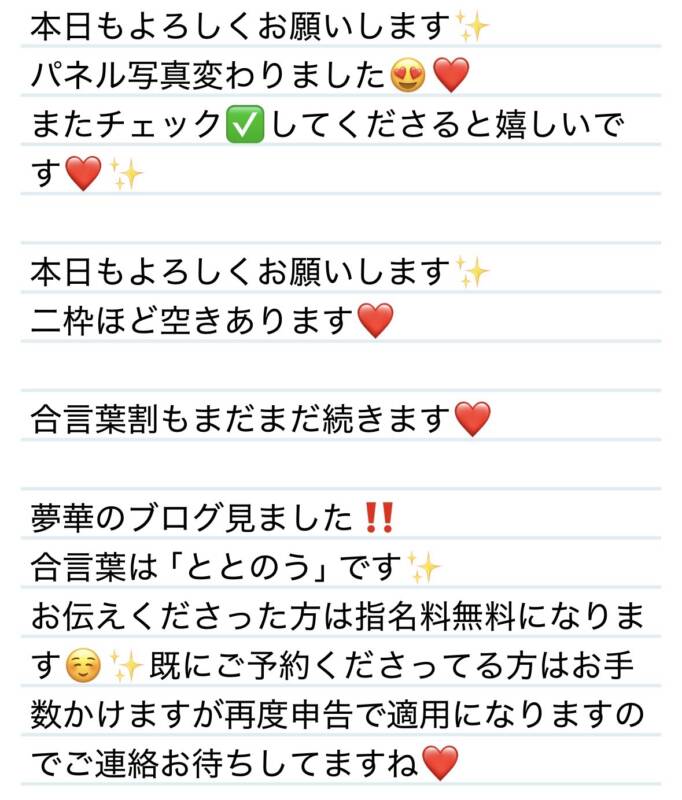 本日も宜しくお願いします❤️ 2026 2/10 夢華 2026.02.10 北陸唯一!パフォーマンスに特化した「魅せる」メンズエステ 心身ともにリラックス。非日常的な極上のひと時を貴方に… お電話でのご予約はこちら LINEでのご予約はこちら 営業時間|9:30~25:00(9:00~25:00 最終受付) 完全ご予約制ご新規様、リピーター様の事前ご予約承ります 夢華 よかったらシェアしてね! URL Copied! URL Copied! 2.9お肉の日&銭湯♨️といえばケロリン桶🐸‼️お肉様❤️ 関連記事 28日 輸血し合えることが判明しました😊✨Yちゃん❤️ 2025.12.29 25日 お手本のような紳士なY様🤣✨❤️ 2025.08.30 8日 2026イケボ声優新人賞狙いに行きましょう✨S君❤️ 2025.12.09 27日 今年中にまた会える⁉️楽しみにしてるね🩷T様❤️ 2025.11.27 30日 選んでくれてありがとう✨綾鷹と呼んでください🥰H様❤️ 2025.10.31 22日 素直なお言葉が嬉しいです✨ありがとう🥰N様❤️ 2025.08.23 8日 2人してありがとうが止まらない平和な世界🌏✨K様❤️ 2025.08.11 20日 しびれさせてゴ.メ.ン⚡️🩷O様❤️ 2025.12.22