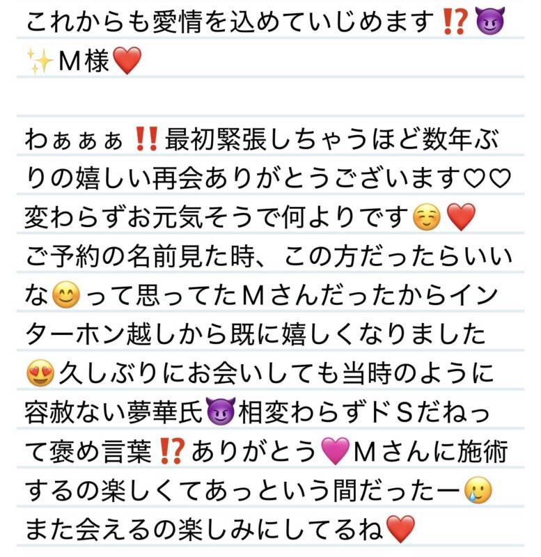 9日 これからも愛情を込めていじめます⁉️😈M様❤️ 2026 2/10 夢華 2026.02.10 北陸唯一!パフォーマンスに特化した「魅せる」メンズエステ 心身ともにリラックス。非日常的な極上のひと時を貴方に… お電話でのご予約はこちら LINEでのご予約はこちら 営業時間|9:30~25:00(9:00~25:00 最終受付) 完全ご予約制ご新規様、リピーター様の事前ご予約承ります 夢華 よかったらシェアしてね! URL Copied! URL Copied! 本日もよろしくお願いします‼︎NEWイベント開始です❤️ 9日 幸せな水色ワールド広がってます🩵💙🤍S様❤️ 関連記事 10月も本当にありがとうーーっっ✨🩷来月もよろしくお願いします🥰✨ 2025.10.31 24日 先月ぶりに会えて嬉しい😊✨M様❤️ 2026.01.26 23日諦めずにお問い合わせくださったおかげで会えたー‼️✨チキンボーイズ様🐓❤️ 2025.08.25 29日 たまにはこっちに書いてみる⁉️📝肉の日だしね🎵お肉様❤️ 2025.10.30 4日 なんでもそつなくこなしちゃう器用なM様✨❤️ 2025.11.06 本日もよろしくお願いします❤️悲しいお知らせ🧊😭 2025.09.01 29日 一緒に銀河鉄道🌌行っちゃったね🎵29社長様❤️ 2026.01.30 25日 メタモルフォーゼ💛💜また会えて嬉しい☺️N様❤️ 2025.10.26