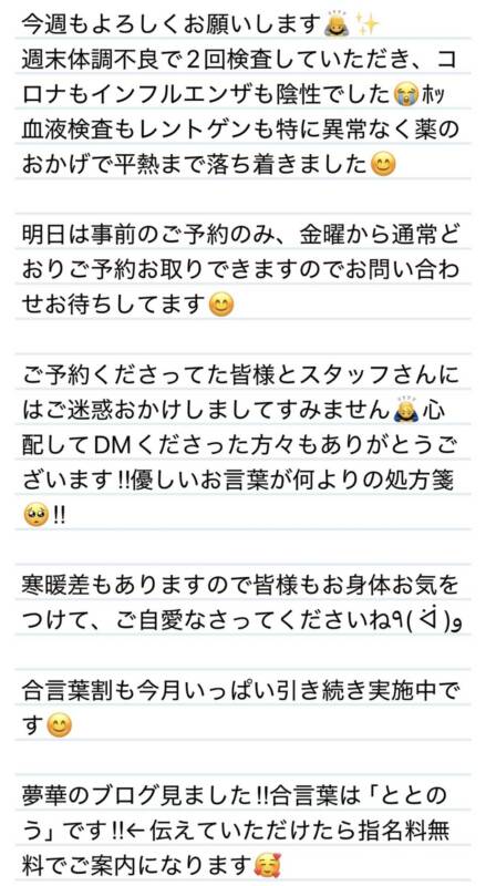 今週もよろしくお願いします🙇♂️ご迷惑お掛けしました😭 2026 2/16 夢華 2026.02.16 北陸唯一!パフォーマンスに特化した「魅せる」メンズエステ 心身ともにリラックス。非日常的な極上のひと時を貴方に… お電話でのご予約はこちら LINEでのご予約はこちら 営業時間|9:30~25:00(9:00~25:00 最終受付) 完全ご予約制ご新規様、リピーター様の事前ご予約承ります 夢華 よかったらシェアしてね! URL Copied! URL Copied! 13日 ハピバです🎉🩷いつもありがとう😊✨H君❤️ 関連記事 本日もよろしくお願いします❄️ 2026.01.29 本日もよろしくお願いします❤️ 2025.12.17 25日 こないだぶりだけどいっぱいお話しできて楽しい〜☺️H君❤️ 2025.12.27 13日 心のビタミン的存在✨リフレッシュできたぁ🩷F-君❤️ 2025.11.14 14日 今年もまた会いに来てくれてありがとう✨T様❤️ 2026.01.16 今週もよろしくお願いします🩷 2025.11.17 4日 お仕事の合間にありがとう☺️いつお会いしても素敵な年上男性✨T様❤️ 2026.02.06 17日 沢山お世話になっから込み上げてくるものがありました‼️✨K様❤️ 2025.12.19