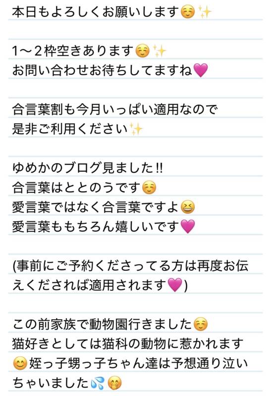 本日もよろしくお願いします✨🐅 2026 2/25 夢華 2026.02.25 北陸唯一!パフォーマンスに特化した「魅せる」メンズエステ 心身ともにリラックス。非日常的な極上のひと時を貴方に… お電話でのご予約はこちら LINEでのご予約はこちら 営業時間|9:30~25:00(9:00~25:00 最終受付) 完全ご予約制ご新規様、リピーター様の事前ご予約承ります 夢華 よかったらシェアしてね! URL Copied! URL Copied! 23日 ゆめはなさんって呼び方初めて☺️←ちょっと気に入ってる🩷M様❤️ 関連記事 20日 K君=クリーニングのK⁉️😳K君❤️ 2025.08.23 20日 しびれさせてゴ.メ.ン⚡️🩷O様❤️ 2025.12.22 本日もよろしくお願いします❤️ 2026.01.28 4日 お仕事の合間にありがとう☺️いつお会いしても素敵な年上男性✨T様❤️ 2026.02.06 27日 またまたまさかの共通点‼️😳運命共同体だよー✨T様❤️ 2025.11.27 2026年もよろしくお願いします✨ 2026.01.05 11日 ジャイアンとのび太のような関係🤣✨U様❤️ 2025.08.14 13日 2度目ましてありがとう✨☺️またすぐ会えて嬉しい🩷T君❤️ 2025.08.14