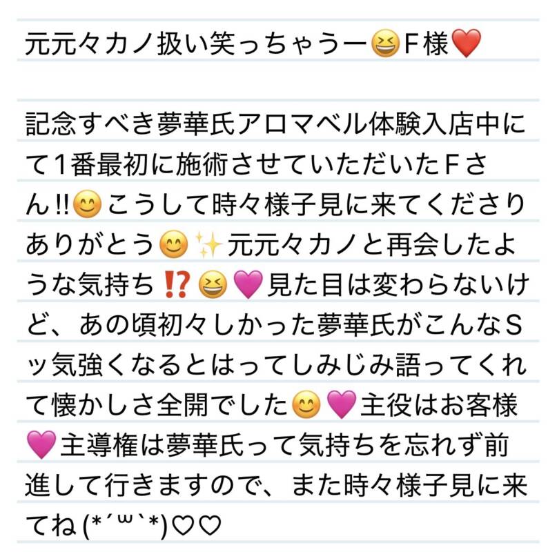 2日 元元々カノ扱い笑っちゃうー😆F様❤️ 2026 3/11 夢華 2026.03.11 北陸唯一!パフォーマンスに特化した「魅せる」メンズエステ 心身ともにリラックス。非日常的な極上のひと時を貴方に… お電話でのご予約はこちら LINEでのご予約はこちら 営業時間|9:30~25:00(9:00~25:00 最終受付) 完全ご予約制ご新規様、リピーター様の事前ご予約承ります 夢華 よかったらシェアしてね! URL Copied! URL Copied! 2日 気さくに沢山お話してくれてありがとう✨Nちゃん❤️ 2日 真面目が売りです😊✨S様❤️ 関連記事 31日 本当に120分経った⁉️ってくらいあっという間😳S様❤️ 2025.08.31 8日 某美術館のお写真をペタリ(*・ω・)ノN君❤️ 2025.08.11 明日もよろしくお願いします✨来週の夢華氏✨ラーメンは一年通していつでも美味しいの三本です‼︎ 2025.11.14 3日 またすぐ会えて嬉しい✨🩷M様❤️ 2025.11.04 昨日もありがとうございました🩷本日もよろしくお願いします✨前半空き枠あります✨ 2025.11.22 7日 似たもの同士フィーリング会うの嬉しい✨Iちゃん❤️ 2026.02.09 10日 テトリスアプリをダウンロードしようか検討中🤔✨T君❤️ 2025.08.12 2日 私って珍しい⁉️印象に残ったら嬉しいです❤️F様❤️ 2026.02.03