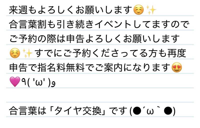 来週も引き続き合言葉割実施してます❤️ 2026 3/13 夢華 2026.03.13 北陸唯一!パフォーマンスに特化した「魅せる」メンズエステ 心身ともにリラックス。非日常的な極上のひと時を貴方に… お電話でのご予約はこちら LINEでのご予約はこちら 営業時間|9:30~25:00(9:00~25:00 最終受付) 完全ご予約制ご新規様、リピーター様の事前ご予約承ります 夢華 よかったらシェアしてね! URL Copied! URL Copied! 13日 お互い全集中の極み🩷✨I様❤️ 関連記事 8日 今年もたくさん三姉妹と過ごしてくれてありがとう✨Y様❤️ 2025.12.09 24日 夢ちゃんって呼んでくれるの嬉しい😊✨U様❤️ 2026.01.26 21日 世の中にこんな美味しいものが‼️2026年夢華氏の中でヒット商品です✨U様❤️ 2026.02.23 27日 某俳優さん(アイドル)ににてるーっっ✨S君❤️ 2025.10.29 10.15焦らさせて癒やされて🩷T様❤️ 2025.10.17 10日 海岸線をバスは進む〜🎵byガールズルール❤️Y様❤️ 2025.11.11 20日 夢華氏の好きなものに寄り添ってくれるの嬉しいです❤️✨S様❤️ 2025.08.23 4日 夢さんの母性をこれでもかとくすぐってくる可愛さ全開🩷F君❤️ 2026.02.06