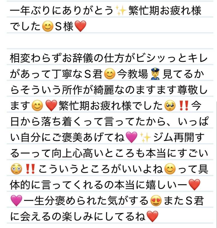 13日一年ぶりにありがとう✨繁忙期お疲れ様でした😊S君❤️ 2026 3/13 夢華 2026.03.13 北陸唯一!パフォーマンスに特化した「魅せる」メンズエステ 心身ともにリラックス。非日常的な極上のひと時を貴方に… お電話でのご予約はこちら LINEでのご予約はこちら 営業時間|9:30~25:00(9:00~25:00 最終受付) 完全ご予約制ご新規様、リピーター様の事前ご予約承ります 夢華 よかったらシェアしてね! URL Copied! URL Copied! 13日 いつでも気兼ねなく話せる関係最高です☺️💟S君❤️ 13日 お互い全集中の極み🩷✨I様❤️ 関連記事 30日 貴方との時間がファンタジー✨🪄H様❤️ 2026.01.31 6日 夢の湯♨️へようこそ⁉️🫢お肉様❤️ 2026.02.07 14日 またお会いできてびっくり‼️😳ありがとう✨S様❤️ 2025.08.19 本日もよろしくお願いします🩷 2025.10.22 本日も宜しくお願いします✨☃️お気をつけてお越しください‼️ 2025.12.05 4日お外も晴天、夢華氏の心も晴天なり☀️T君❤️ 2025.11.06 27日 いつもありがとう🥰心のこもった差し入れも嬉しいです✨N様❤️ 2025.10.29 12日 お心遣いの天才‼️いつもありがとうぅ❤️✨S様❤️ 2026.01.14