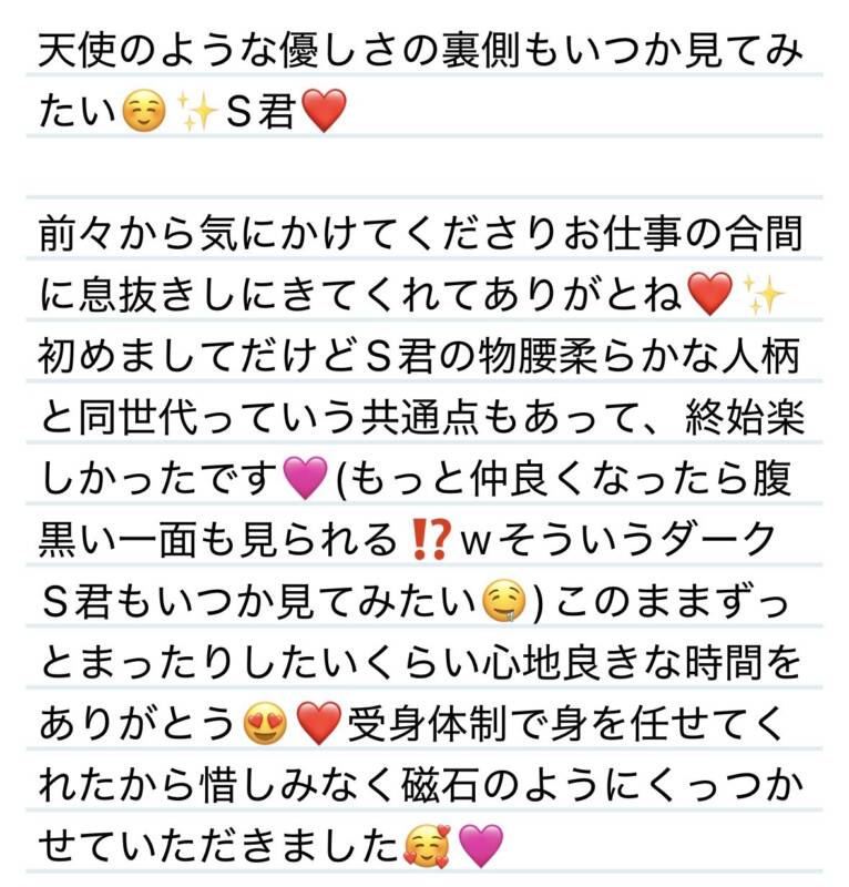 13日 天使のような優しさの裏側もいつか見てみたい☺️✨S君❤️ 2026 3/13 夢華 2026.03.13 北陸唯一!パフォーマンスに特化した「魅せる」メンズエステ 心身ともにリラックス。非日常的な極上のひと時を貴方に… お電話でのご予約はこちら LINEでのご予約はこちら 営業時間|9:30~25:00(9:00~25:00 最終受付) 完全ご予約制ご新規様、リピーター様の事前ご予約承ります 夢華 よかったらシェアしてね! URL Copied! URL Copied! 今月2日お会いした方々へ🙇♂️ 13日 いつでも気兼ねなく話せる関係最高です☺️💟S君❤️ 関連記事 29日 東京から会いに来てくれたのー⁉️✨マイメロ様🐰🎀 2025.12.31 15日 Re:ゼロから始める夢華生活へようこそ✨I様❤️ 2025.12.15 25日 3度目ましても言えて嬉しい☺️✨本当にありがとう✨T様❤️ 2025.08.30 本日もよろしくお願いします🩷 2025.12.14 6日 まさかのタイムリーな話題をありがとう🩷✨K様❤️ 2026.03.07 今年もたくさんお世話になりました❤️皆様に感謝です✨ 2025.12.31 21日 誰に施術するかが大事っっ✨W君❤️ 2026.02.23 6日今日も今日とてギャップがすごい😂✨N様❤️ 2026.02.07
