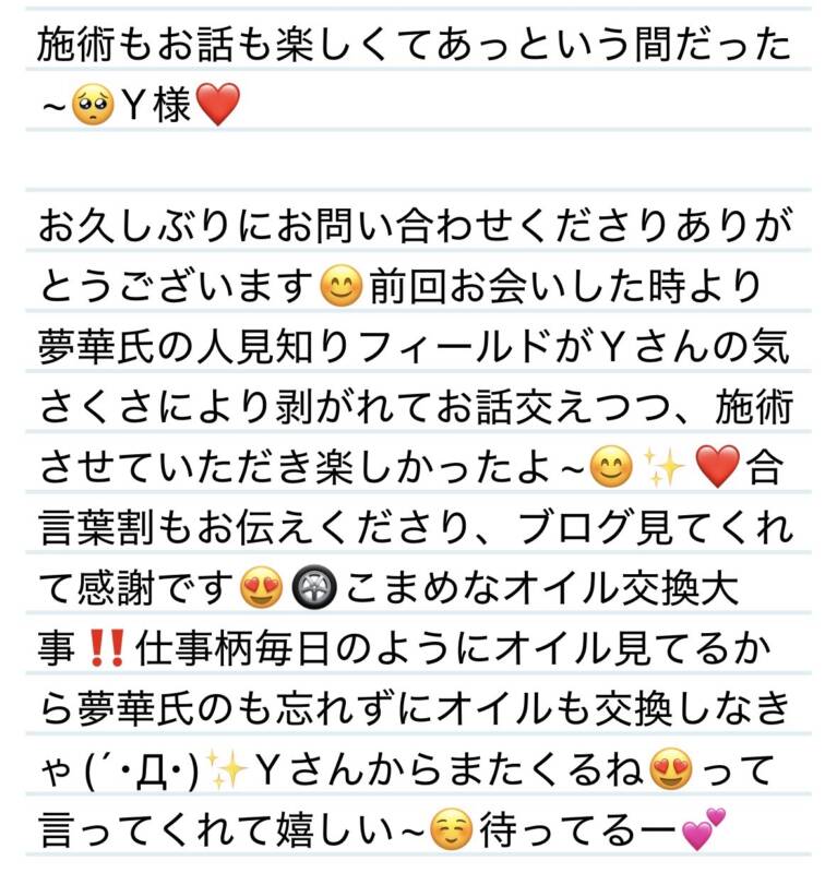 16日施術もお話も楽しくてあっという間だった🥺Y様❤️ 2026 3/17 夢華 2026.03.17 北陸唯一!パフォーマンスに特化した「魅せる」メンズエステ 心身ともにリラックス。非日常的な極上のひと時を貴方に… お電話でのご予約はこちら LINEでのご予約はこちら 営業時間|9:30~25:00(9:00~25:00 最終受付) 完全ご予約制ご新規様、リピーター様の事前ご予約承ります 夢華 よかったらシェアしてね! URL Copied! URL Copied! 本日も宜しくお願いします💕 16日 アニメトークに開封の儀に楽しい時間をたくさんありがとう😊A君❤️ 関連記事 7日 似たもの同士フィーリング会うの嬉しい✨Iちゃん❤️ 2026.02.09 2日 メロンもマスカットも夢華心くすぐるぜ‼️✨Y様(R君)❤️ 2025.08.07 今週もよろしくお願いします❤️ 2025.11.24 本日も宜しくお願いします♡ 2025.12.15 本日もよろしくお願いします🩷 2026.02.20 27日 調査兵団かと思うからやめてー🤣🩷K様💟❤️ 2025.10.29 19日 今年の締めにYさんと新垣結衣と夢華氏の3人で山岡家⊂((・x・))⊃?Y様❤️ 2025.12.20 10日マッサージ欲が高い時に来てくれるの嬉しい✨T様❤️ 2025.11.11