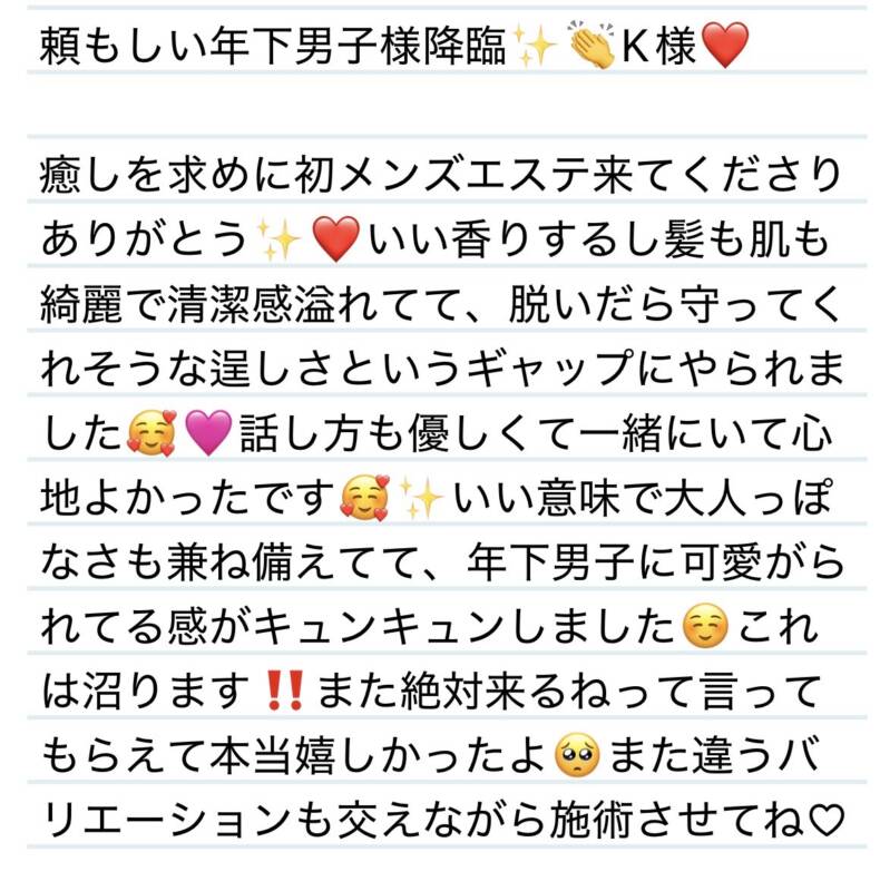 17日 頼もしい年下男子様降臨✨👏K様❤️ 2026 3/20 夢華 2026.03.20 北陸唯一!パフォーマンスに特化した「魅せる」メンズエステ 心身ともにリラックス。非日常的な極上のひと時を貴方に… お電話でのご予約はこちら LINEでのご予約はこちら 営業時間|9:30~25:00(9:00~25:00 最終受付) 完全ご予約制ご新規様、リピーター様の事前ご予約承ります 夢華 よかったらシェアしてね! URL Copied! URL Copied! 本日もよろしくお願いします✨ 17日 ベストな体制見つけていきましょう☺️✨N様❤️ 関連記事 16日素敵な趣味と人柄の持ち主✨M様❤️ 2026.01.17 16日 頑張って受身になってくれてありがとう✨😊Y様💟❤️ 2026.01.17 5日会って早々以心伝心嬉しいーっ✨😊M様❤️ 2026.03.06 25日嬉しい再会ありがとうございます✨K様❤️ 2026.02.27 本日もよろしくお願いします❤️ 2025.11.13 6日 今度猫じゃらし用意しとくね✨K君❤️ 2025.08.10 14日 またお会いできてびっくり‼️😳ありがとう✨S様❤️ 2025.08.19 25日 3度目ましても言えて嬉しい☺️✨本当にありがとう✨T様❤️ 2025.08.30