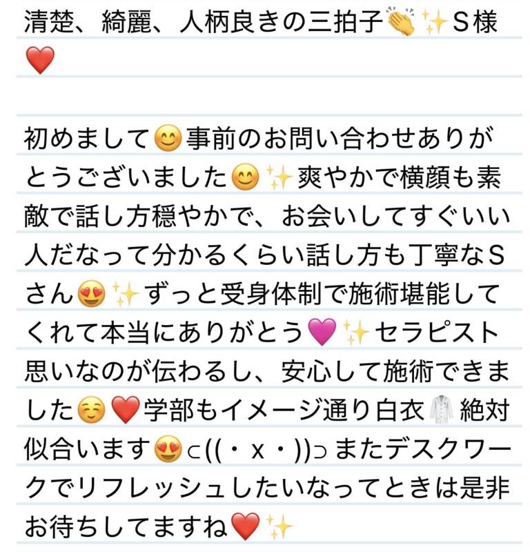 19日 清楚、綺麗、人柄良きの三拍子👏✨S様❤️ 2026 3/20 夢華 2026.03.20 北陸唯一!パフォーマンスに特化した「魅せる」メンズエステ 心身ともにリラックス。非日常的な極上のひと時を貴方に… お電話でのご予約はこちら LINEでのご予約はこちら 営業時間|9:30~25:00(9:00~25:00 最終受付) 完全ご予約制ご新規様、リピーター様の事前ご予約承ります 夢華 よかったらシェアしてね! URL Copied! URL Copied! 17日 ベストな体制見つけていきましょう☺️✨N様❤️ 19日 同世代って1番照れるよね😊💟T様❤️ 関連記事 2日 メロンもマスカットも夢華心くすぐるぜ‼️✨Y様(R君)❤️ 2025.08.07 26日 今度Kちゃんの男前なところについて討論しよ✨Kちゃん❤️ 2025.08.30 9日 お話も施術も楽しすぎました✨❤️M様❤️ 2026.03.11 13日 いつでも気兼ねなく話せる関係最高です☺️💟S君❤️ 2026.03.13 本日もよろしくお願いします❤️ 2025.12.17 26日 二度目ましてありがとう☺️また来てくださってびっくり‼️Y様❤️ 2026.01.28 16日 頑張って受身になってくれてありがとう✨😊Y様💟❤️ 2026.01.17 5日 かわいさ120%✨二度目まして😊Nちゃん❤️ 2025.11.06