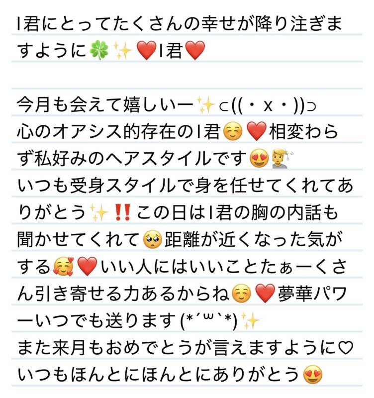 21日 I君にとって沢山の幸せが降り注ぎますように🍀✨❤️I君❤️ 2026 3/24 夢華 2026.03.24 北陸唯一!パフォーマンスに特化した「魅せる」メンズエステ 心身ともにリラックス。非日常的な極上のひと時を貴方に… お電話でのご予約はこちら LINEでのご予約はこちら 営業時間|9:30~25:00(9:00~25:00 最終受付) 完全ご予約制ご新規様、リピーター様の事前ご予約承ります 夢華 よかったらシェアしてね! URL Copied! URL Copied! 20日 会いたかったよ〜٩( 'ω' )و✨家族のような絆大事☺️Y様❤️ 関連記事 27日 新しい場所でも変わらず癒しをありがとう✨I様❤️ 2025.11.27 23日爪の先まで美意識高いの尊敬です✨🩷N様❤️ 2025.08.25 7日 カワイイだけじゃないんです‼︎右左正面キュン死させられる⁉️M君❤️ 2025.11.08 29日 来年も一緒に楽しく過ごそうね✨W様❤️ 2025.12.31 25日 遠くからありがとう✨ご無理だけはなさらずにね☺️N様❤️ 2025.11.25 本日もよろしくお願いします❤️ 2026.01.10 2日 またすぐに会いに来てくれてありがとう❤️✨Y君(H君)❤️ 2025.08.07 本日もよろしくお願いします❤️&来週の夢華氏⊂((・x・))⊃ 2026.01.31