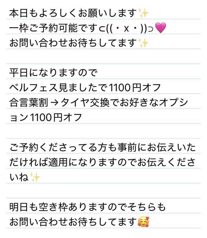 本日もよろしくお願いします🩷平日ベルフェス、合言葉割適用併用可能です✨ 2026 3/27 夢華 2026.03.27 北陸唯一!パフォーマンスに特化した「魅せる」メンズエステ 心身ともにリラックス。非日常的な極上のひと時を貴方に… お電話でのご予約はこちら LINEでのご予約はこちら 営業時間|9:30~25:00(9:00~25:00 最終受付) 完全ご予約制ご新規様、リピーター様の事前ご予約承ります 夢華 よかったらシェアしてね! URL Copied! URL Copied! 25日 貴重なお休みの中ありがとう✨リフレッシュできてたら幸いです🩷T様❤️ 関連記事 3日どうやって今から可愛がろうか今からワクワクです😈✨🩷F君❤️ 2026.02.04 30日 思いやりの塊✨いつも癒しをありがとう🍀✨Y君❤️ 2025.08.31 🐟11.24何の日しんちゃんへ🍚 2025.11.25 13日 お互い全集中の極み🩷✨I様❤️ 2026.03.13 2.9お肉の日&銭湯♨️といえばケロリン桶🐸‼️お肉様❤️ 2026.02.10 今週もよろしくお願いします✨ 2025.10.20 2026年もよろしくお願いします✨ 2026.01.05 6日 新年のご挨拶ありがとう✨今年もよろしくお世話になります🩷K様❤️ 2026.01.07