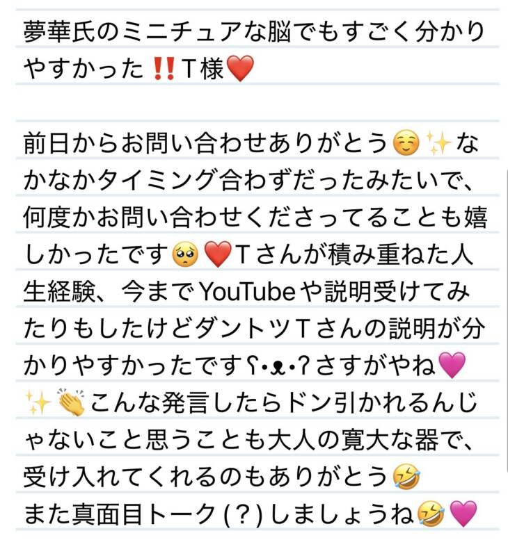 3日 夢華氏のミニチュアな脳でもすごく分かりやすかった‼️✨T様❤️ 2026 4/07 夢華 2026.04.07 北陸唯一!パフォーマンスに特化した「魅せる」メンズエステ 心身ともにリラックス。非日常的な極上のひと時を貴方に… お電話でのご予約はこちら LINEでのご予約はこちら 営業時間|9:30~25:00(9:00~25:00 最終受付) 完全ご予約制ご新規様、リピーター様の事前ご予約承ります 夢華 よかったらシェアしてね! URL Copied! URL Copied! 3日 2回目もまた違った緊張感があるよね🩷それさえも心地いいです✨S君❤️ 4日 ありがとう🍓🍰おやつの時間にいただきました✨U様❤️ 関連記事 13日 おかげでいつもモチベーション上がります✨M様💟❤️ 2025.08.14 10日 可動域広がっていつも以上のスコア出せてたら幸いです❤️S様❤️ 2026.02.11 21日 I君にとって沢山の幸せが降り注ぎますように🍀✨❤️I君❤️ 2026.03.24 本日もよろしくお願いします❤️ 2025.11.07 5日 日中でも夜でもいつでもウェルカムです✨❤️O様❤️ 2025.12.06 2日 一緒に生誕祭味わえて嬉しいー✨スンスンおめでとう🎉S様❤️ 2026.02.03 27日 ちいかわシリーズ蒸気アイマスクして寝たら秒で落ちました😍K様❤️ 2026.02.28 昨日もありがとう🩷明日からもよろしくお願いします✨ 2025.10.26
