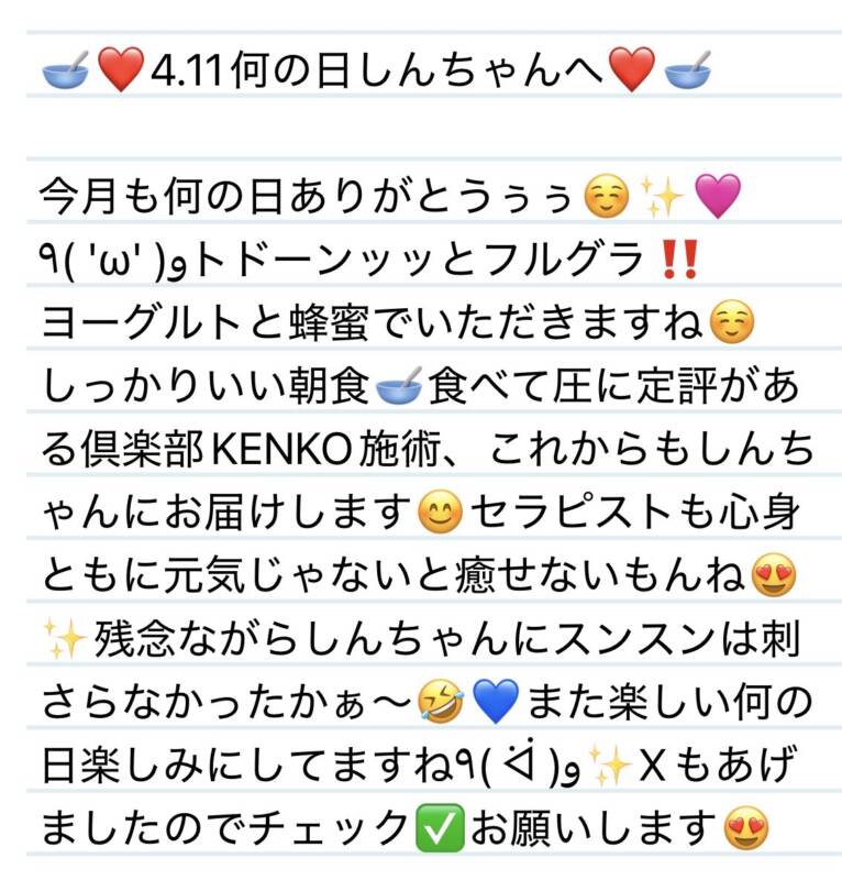 🥣❤️4.11今日は何の日しんちゃんへ❤️🥣 2026 4/12 夢華 2026.04.12 北陸唯一!パフォーマンスに特化した「魅せる」メンズエステ 心身ともにリラックス。非日常的な極上のひと時を貴方に… お電話でのご予約はこちら LINEでのご予約はこちら 営業時間|9:30~25:00(9:00~25:00 最終受付) 完全ご予約制ご新規様、リピーター様の事前ご予約承ります 夢華 よかったらシェアしてね! URL Copied! URL Copied! 11日 推しラーメンが一緒ーっっ🩷✨O君❤️ 関連記事 19日 まさかのコラボ⁉️✨いつもと違ったMさんが見れて嬉しい✨🩷M様❤️ 2025.08.22 今週もよろしくお願いします✨ 2025.10.20 11日 離れ難い時間をありがとう🥺O様❤️ 2025.11.13 昨日もありがとうございました🩷本日もよろしくお願いします✨前半空き枠あります✨ 2025.11.22 本日もよろしくお願いします‼️ 2026.01.26 本日もよろしくお願いします❤️&来週の夢華氏⊂((・x・))⊃ 2026.01.31 昨日もありがとう🩷明日からもよろしくお願いします✨ 2025.10.26 28日 きっかけは夢華氏🩷嬉しい新事実✨U様❤️ 2025.11.29