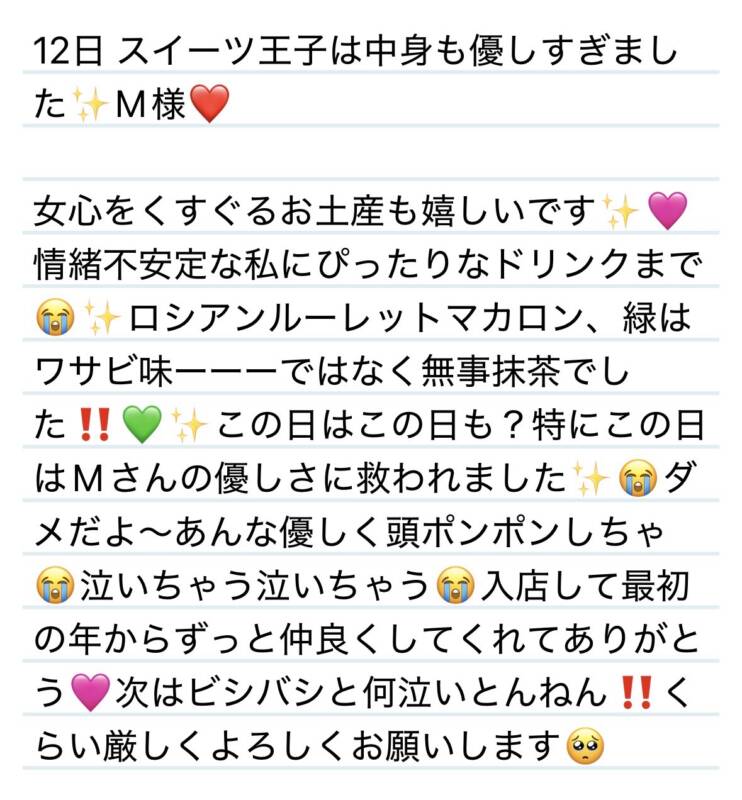 12日 スイーツ王子は中身も優しすぎました✨M様❤️ 2026 4/14 夢華 2026.04.14 北陸唯一!パフォーマンスに特化した「魅せる」メンズエステ 心身ともにリラックス。非日常的な極上のひと時を貴方に… お電話でのご予約はこちら LINEでのご予約はこちら 営業時間|9:30~25:00(9:00~25:00 最終受付) 完全ご予約制ご新規様、リピーター様の事前ご予約承ります 夢華 よかったらシェアしてね! URL Copied! URL Copied! 12日 ちいかわに自宅警備頑張ってもらいます‼️٩( ᐛ )وS様❤️ 関連記事 6日 夢の湯♨️へようこそ⁉️🫢お肉様❤️ 2026.02.07 本日も宜しくお願いします☺️🩷 2025.11.26 25日 貴重なお休みの中ありがとう✨リフレッシュできてたら幸いです🩷T様❤️ 2026.03.27 今年もたくさんお世話になりました❤️皆様に感謝です✨ 2025.12.31 3日 恋愛サーキュレーション歌うからね(´・Д・)←ぇ😳K様❤️ 2026.03.05 1日座布団ないからタオル回収🤣リッツ大喜利笑点⁉️I君💟❤️ 2025.09.02 本日もよろしくお願いします✨ 2026.03.11 来週の夢華氏( ˙-˙ )❤️ 2025.12.06