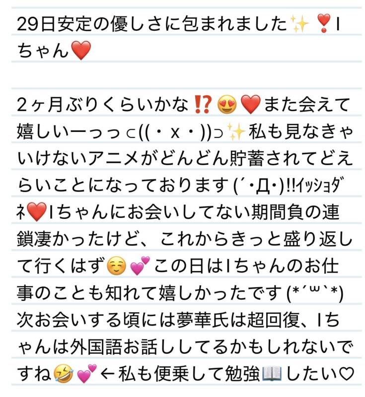 29日 安定の優しさに包まれました✨❣️Iちゃん❤️ 2026 4/30 夢華 2026.04.30 北陸唯一!パフォーマンスに特化した「魅せる」メンズエステ 心身ともにリラックス。非日常的な極上のひと時を貴方に… お電話でのご予約はこちら LINEでのご予約はこちら 営業時間|9:30~25:00(9:00~25:00 最終受付) 完全ご予約制ご新規様、リピーター様の事前ご予約承ります 夢華 よかったらシェアしてね! URL Copied! URL Copied! 27日 思いやりのお気持ち嬉しかったです🥰N様(H様)❤️ 29日 一緒に過ごしてくれてたくさんの思い出をありがとう✨I君❤️ 関連記事 8日 イジワルじゃないもん、マッサージしてるだけだもん😆←言い方w T君❤️ 2025.12.09 5日 日中でも夜でもいつでもウェルカムです✨❤️O様❤️ 2025.12.06 16日施術もお話も楽しくてあっという間だった🥺Y様❤️ 2026.03.17 13日 いつでも気兼ねなく話せる関係最高です☺️💟S君❤️ 2026.03.13 本日もよろしくお願いします🥺来週の夢華氏です✨ 2026.04.11 28日 久しぶりでも緊張せず話せる間柄が嬉しいーっっ🩷✨F様❤️ 2026.03.02 20日 嬉しい楽しい幸せ形容詞が溢れてる✨🩷N君❤️ 2026.01.21 本日も宜しくお願いします✨ 2026.03.03
